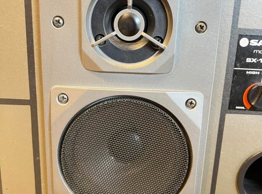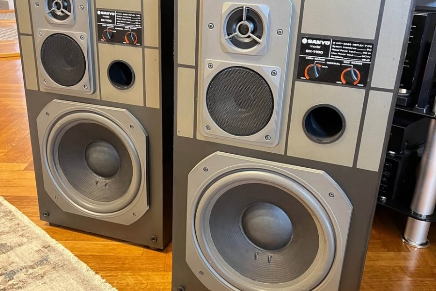 Cena: 150 € Odlični zvučnici Sanyo SX-1100 najveći u seri od tri modela. Bas 10 incha, imaju ton kontrolu na sebi za srednjetonski i visokotonski opseg. Drajveri u odličnom stanju, kabineti imaju tragove korištenja ali zanemarljivo za godine starosti. Posedujem jedan originalni gril a drugi sam oštetio. Po originalnom grilu moguće napraviti drugi ... imam kopče sa starog grila koje idu uz zvučnike. Dugo su kod mene, slušao sam ih na Akai AM-59 Yamaha ax-900 nekim Kenwood i Onkyo pojačalima. Jako dobro se pokazuju na svim vrstama pojačala i imaju pravi HI-Fi zvuk. Svaka proba moguća i poželjna. Dimenzije: 32 x 58 x 31.8 cm